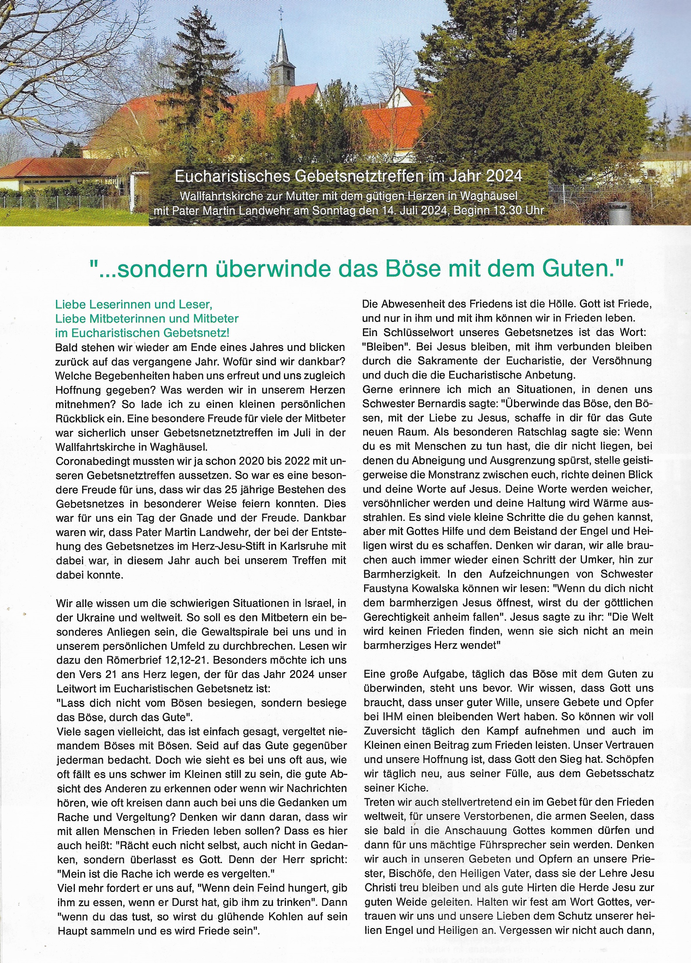 liebe Mitbeterinnen und Mitbeter im Eucharistischen Gebetsnetz.